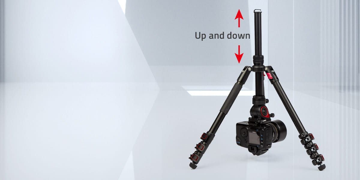 Snímanie z nízkeho uhla Stredový stĺpik je možné nastaviť nahor a nadol a dokonca podporuje aj obrátenú inštaláciu pre snímanie z nízkeho uhla.