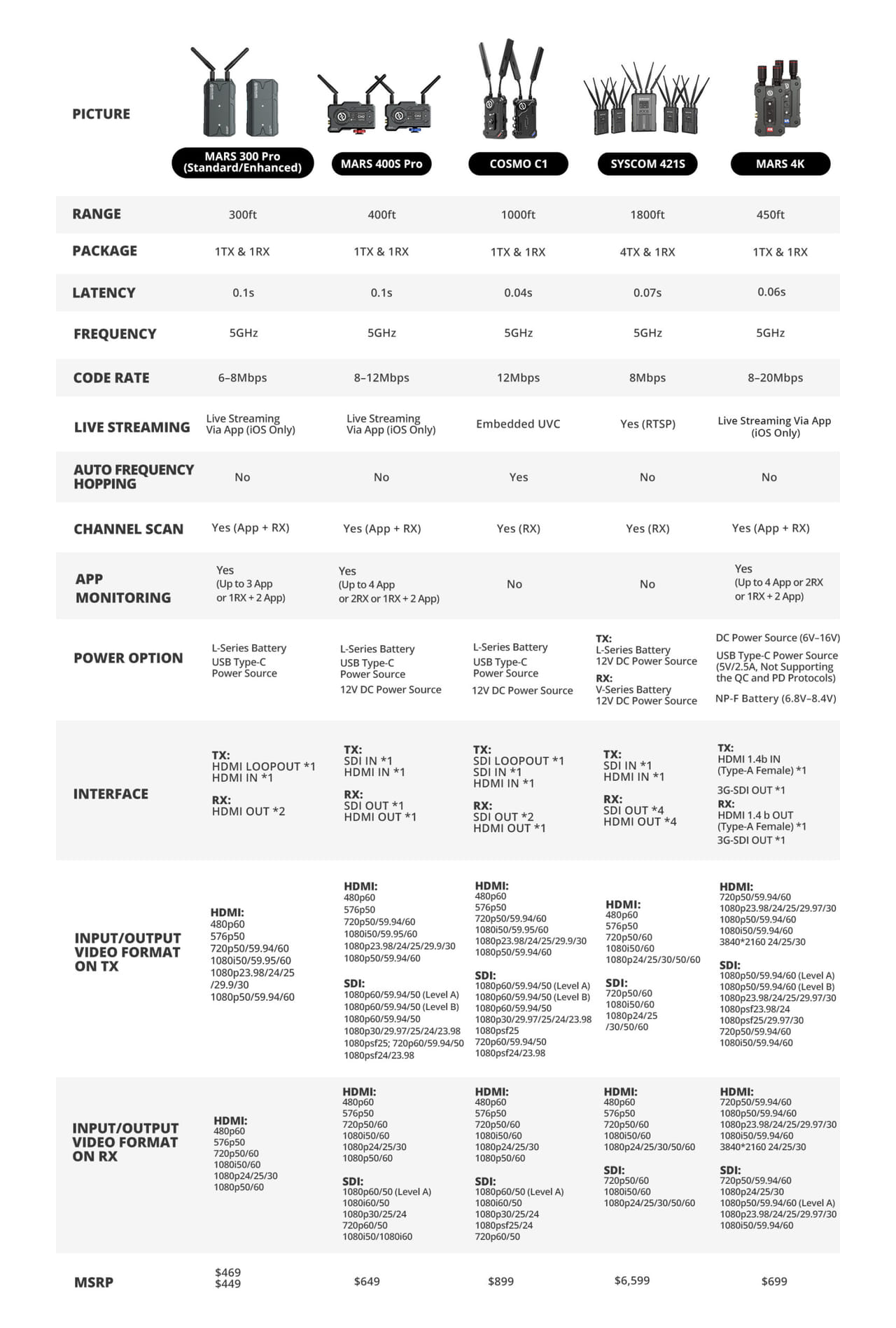 Bezdrôtový video a audio prenosový systém Hollyland Syscom 421 je systém bezdrôtového prenosu videa s viacerými kamerami, ktorý komunikuje až so štyrmi kamerami pomocou jedného prijímača s ovládaním PTZ, ako aj záznamom. Systém vysielača/prijímača, ktorý podporuje video signály až 1080p60 cez SDI a HDMI, ponúka dosah priameho viditeľnosti 548 metrov s oneskorením 0,07 sekundy.