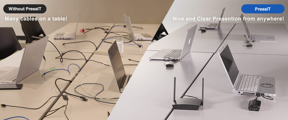 PressIT predstavuje jednoduché a elegantné riešenie, v ktorom je možné pripojiť až 32 zariadení súčasne a umožniť tak spúšťanie prezentácii od viacerých účastníkov v 4K a HD rozlíšeniach na TV či pomocou projektora.